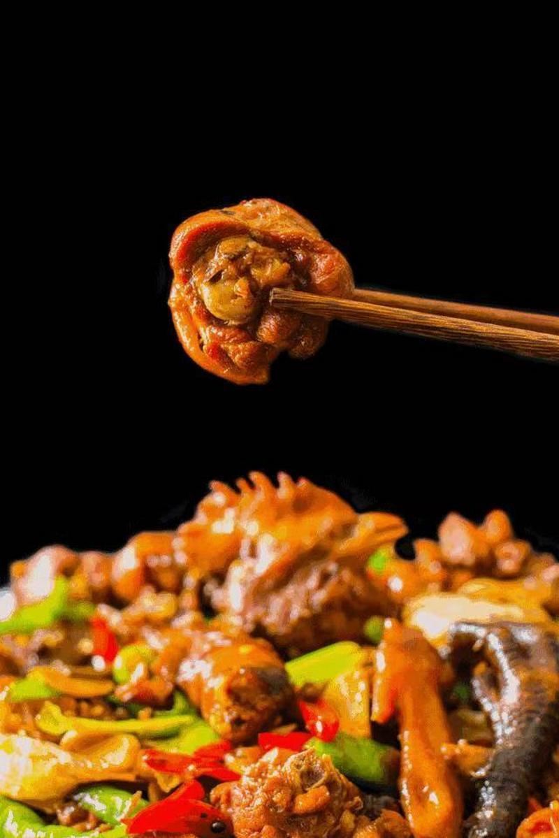 The dish took shape in ​farmhouse kitchens, where large cast-iron woks glowed over wood-fired stoves. Unlike deep-frying, which was rare in mountain households (due to limited oil), cooks “stir-fried” (爆炒) the chicken—searing it quickly over high heat to lock in juices, then slow-cooking it with aromatics to infuse flavor. This method not only preserved the chicken’s tenderness but also made it easy to pack for long hikes.